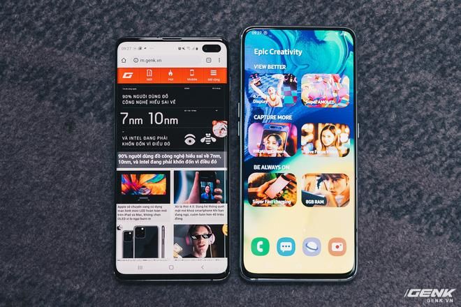 Về thông số kỹ thuật, Galaxy A80 trang bị con chip Snapdragon 730G, RAM 8GB và bộ nhớ trong 128GB. Điều này làm cho Galaxy A80 có hiệu suất tương đương với Galaxy S10 và S10+, mặc dù con chip có chút khác biệt. Galaxy A80 cũng tích hợp cảm biến vân tay dưới màn hình, nhưng là loại quang học, không phải siêu âm như Galaxy S10. Những điểm khác biệt này hoàn toàn hợp lý vì Galaxy A80 thuộc phân khúc giá thấp hơn Galaxy S.