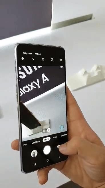 Cụm camera thò thụt và xoay lật của Galaxy A80 khi nhìn từ mặt trước...