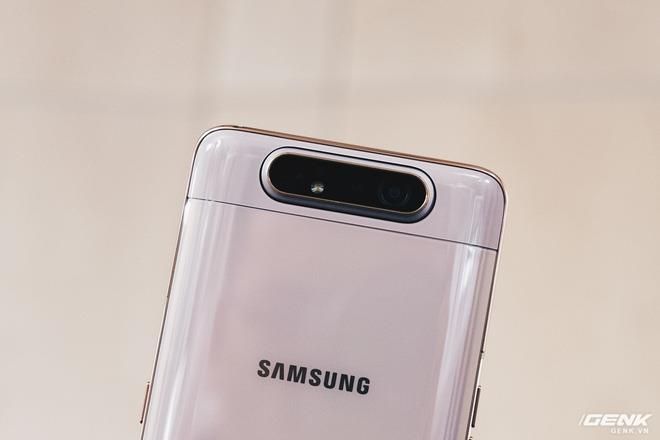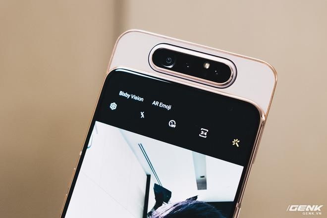 Điểm đặc biệt của Galaxy A80 là thiết kế camera linh hoạt, có thể thò thụt và xoay lật. Thay vì sử dụng camera trước và sau riêng biệt, Galaxy A80 chỉ có một cụm camera độc đáo. Khi ở trạng thái bình thường, cụm camera này nằm ở mặt sau; nhưng khi người dùng muốn chụp ảnh selfie, nó sẽ tự động thò lên và xoay ra mặt trước.