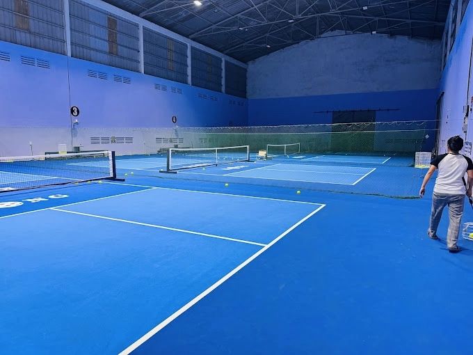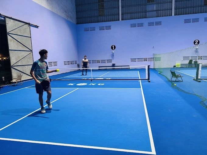 Kong Pickleball Bmt Daklak sở hữu hệ thống 6 sân trong nhà rộng rãi, sạch đẹp, với không gian thoáng đãng. Sân được trang bị hệ thống chiếu sáng LED chống chói hiện đại, giúp đảm bảo đủ ánh sáng cho các trận đấu cả ngày lẫn đêm. Mặt sân đạt chuẩn quốc tế, luôn được vệ sinh kỹ lưỡng và có độ bám rất tốt.