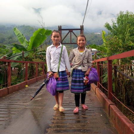Sáng sớm, dọc theo con suối và qua những chiếc cầu treo, bạn có thể gặp các em bé dân tộc mặc váy thổ cẩm, nói tiếng Anh giọng Mỹ. Tả Van chỉ có khoảng 40 hộ dân, sống gần gũi với thiên nhiên, hoàn toàn khác biệt so với chốn đô thị.