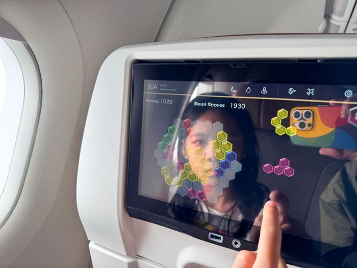Danh mục giải trí phong phú với nhiều bộ phim, trò chơi, nhạc và thông tin cùng bản đồ đường bay được cập nhật liên tục. Với màn hình sắc nét và âm thanh rõ ràng, mình đã xem được 3 bộ phim trong chuyến bay, bên cạnh thời gian ngủ.