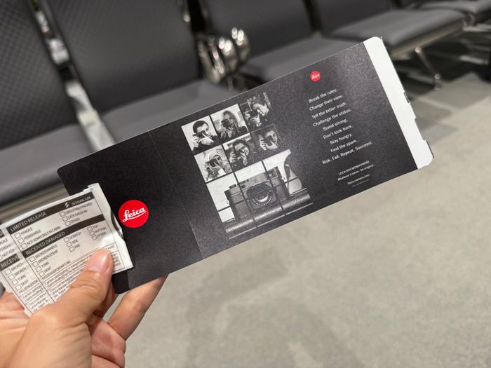 Thẻ lên máy bay được in quảng cáo của Leica ở mặt sau, trông rất đẹp mắt