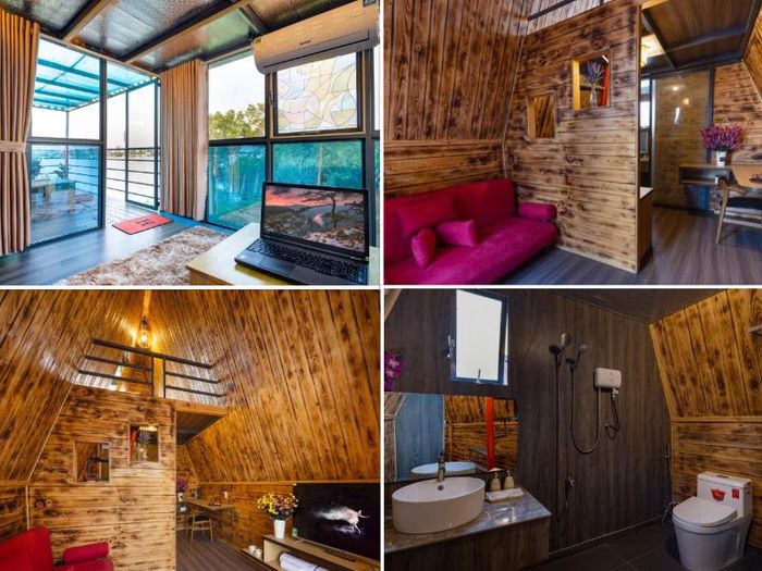 Bước vào mỗi phòng, du khách sẽ ngạc nhiên trước không gian rộng lớn. Bề mặt phòng được lát đá gỗ tự nhiên, mang đến cảm giác mộc mạc nhưng vẫn rất sang trọng. Ngoài ra, phòng ở còn trang bị đầy đủ tiện nghi như điều hòa, TV màn hình phẳng,… Phòng tắm có thiết kế nhỏ gọn nhưng vẫn đảm bảo không gian thoải mái cho du khách.