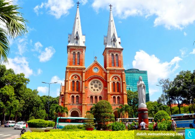 Hoặc còn được biết đến với tên gọi đầy đủ là Nhà thờ Chính tòa Đức Bà Sài Gòn, nằm tại quận 1. Nhà thờ được xây dựng dưới thời giám mục Colombert, theo phong cách kiến trúc Roman. Hãy dành thời gian để chiêm ngưỡng vẻ đẹp độc đáo của công trình này. Khi bước vào bên trong nhà thờ, ngồi trên những chiếc ghế gỗ và dành thời gian để suy tư, bạn sẽ cảm thấy bình yên. Gần nhà thờ cổ kính là những tòa nhà hiện đại bằng bê tông cốt thép, lộng lẫy. Từ Nhà thờ Đức Bà, du khách có thể ghé thăm Dinh Độc Lập, Hồ Con Rùa, thăm phố Đồng Khởi, mua sắm tại Diamond Plaza…