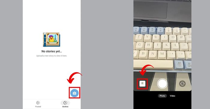 Nếu bạn sử dụng điện thoại Android, hãy nhấn vào biểu tượng ba gạch ngang ở góc trái màn hình. Tiếp theo, chọn My Stories, sau đó vào Story Archive và nhấn biểu tượng máy ảnh để chụp ảnh hoặc quay video và chỉnh sửa.