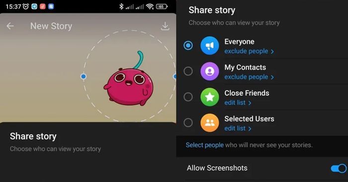 Chọn đối tượng xem story trên Telegram