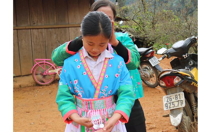 Mỗi Tết đến, mọi nhà, mọi người trang trí bằng những bộ trang phục mới, lộng lẫy. Người Mông cũng không ngoại lệ, họ diện những bộ đồ thổ cẩm tinh tế, được làm từ vải tự dệt, kết hợp với khăn đội đầu và thắt lưng. Mỗi chi tiết đều được thêu hoa văn tinh xảo.