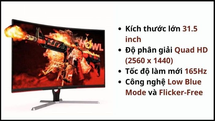 - Kích thước màn hình: 31.5 inch 2K, tần số làm mới 165Hz