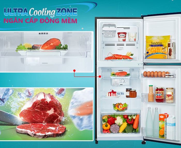 - Ngăn cấp đông mềm Ultra Cooling Zone tạo ra lớp băng mỏng