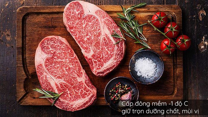 Thực phẩm được bảo quản trong ngăn cấp đông mềm ở nhiệt độ -1℃ sẽ không đóng băng, và còn được bao phủ bởi một lớp băng mỏng giúp bảo quản chất lượng, độ tươi mới và dinh dưỡng của thực phẩm.