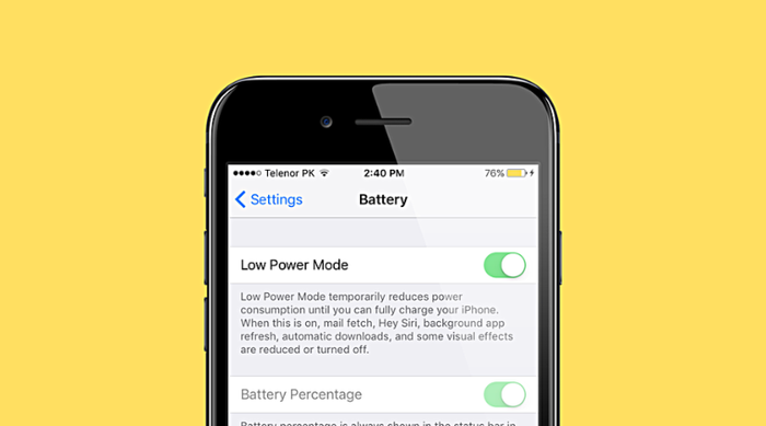 Khi bật tính năng tiết kiệm pin, tất cả các ứng dụng cài đặt trên điện thoại sẽ tắt chức năng làm mới và chỉ khởi động lại khi bạn bật nó. Đồng thời, tính năng định vị cũng sẽ tự động tắt, ứng dụng chạy tự động trong nền cũng sẽ bị vô hiệu hóa. Trợ lý ảo như Siri, Google Assistant cũng sẽ tạm ngừng nhận diện giọng nói trừ khi bạn tương tác trực tiếp. Đây là những tính năng gây tốn pin nhanh, vì vậy khi kích hoạt tính năng tiết kiệm pin, những chức năng này sẽ tạm thời ngừng hoạt động để kéo dài thời gian sử dụng máy.