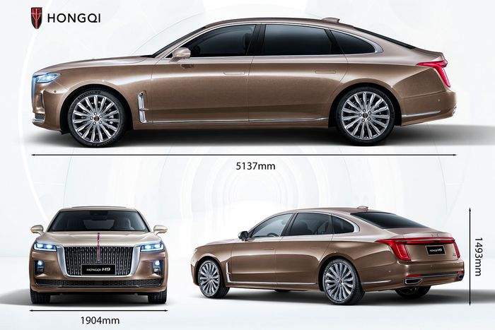 Bên ngoài, xe Hongqi H9 thu hút sự chú ý với mặt nạ lưới cỡ lớn, hệ thống đèn định vị tích hợp với đèn chính dạng Matrix LED. Xe có kích thước dài x rộng x cao lần lượt là 5.137 x 1.904 x 1.492 mm, chiều dài cơ sở đạt mức 3.060 mm.