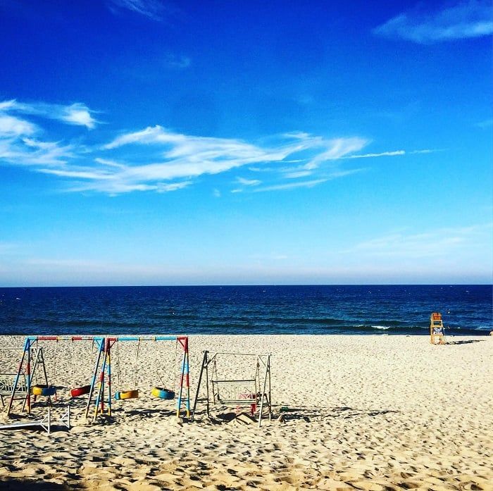 Bãi biển tại địa điểm này có dốc thoải, an toàn cho gia đình và nhóm bạn cùng thư giãn. Bạn có thể tận hưởng làn gió biển qua rặng phi lao, âm thanh sóng biển rì rào và tham gia các hoạt động biển sôi động như bóng đá, bóng ném, bóng chuyền bãi biển...