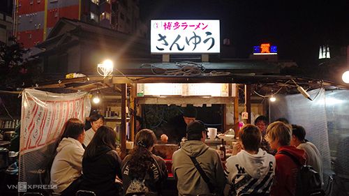 Người dân và du khách thường đến thưởng thức mì ramen trên phố Nakasu nổi tiếng ở Fukuoka.
