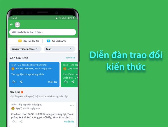 Kiến Guru tạo diễn đàn để học sinh chủ động đặt câu hỏi, thảo luận với bạn bè và nhận sự hỗ trợ từ cộng đồng học tập. Trên diễn đàn, giáo viên hướng dẫn thảo luận và xác nhận câu trả lời đúng, tạo nên môi trường học tập sôi động và thú vị.