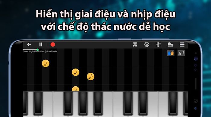 Nốt nhạc được hiển thị theo cách thú vị với chế độ thác nước, giúp bạn quan sát và học theo một cách dễ dàng.
