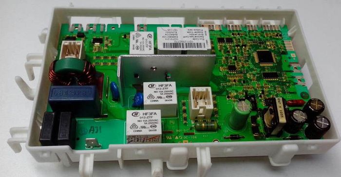 Bo mạch đóng vai trò quan trọng, kiểm soát hầu hết các chức năng của máy giặt. Khi bo mạch bị hỏng, máy giặt có thể gặp vấn đề không vào điện.