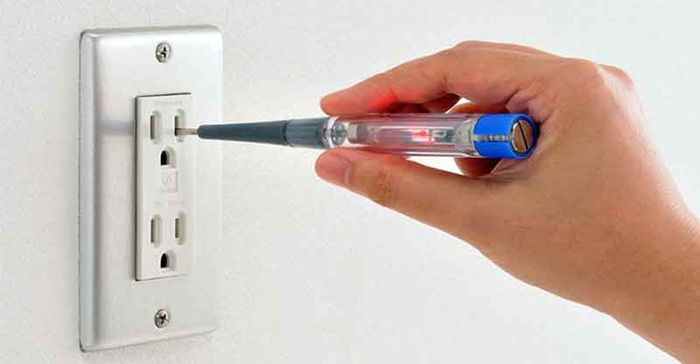 Sử dụng bút thử điện để kiểm tra ổ cắm.