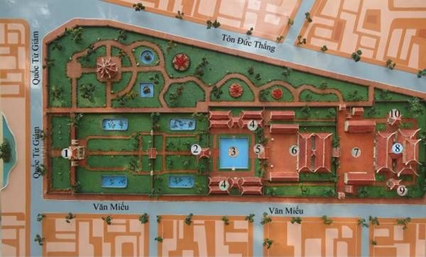Văn Miếu nằm ở phía Nam thành Thăng Long, có tổng diện tích 55.027 m² bao gồm Hồ Văn, vườn Giám và Nội tự.