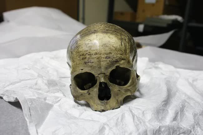 Hộp sọ của Rene Descartes trưng bày tại Bảo tàng Nhân loại ở Paris