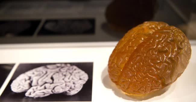 Bộ não và mô hình của Albert Einstein trưng bày tại triển lãm Wellcome Collection ở London, Anh vào năm 2012.