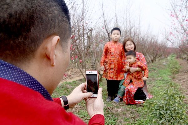 Chỉ còn hơn một tuần nữa là Tết Nguyên đán sẽ bắt đầu, và lúc này, những cành đào đã nở rộ, màu hồng tinh khôi của cánh đào phủ đầy vườn, tạo nên không khí thơ mộng và ấm áp của mùa xuân. Bức tranh này là điểm lý tưởng để ghi lại những khoảnh khắc tràn đầy năng lượng cho mùa Tết.