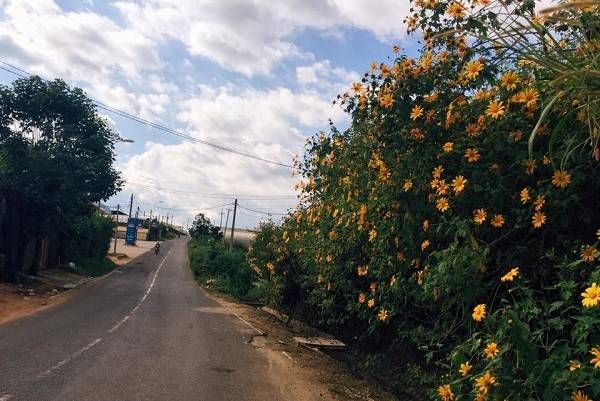 Vào khoảng tháng 10 và 11, cả hai bên đường sẽ lung linh trong sắc vàng của hoa dã quỳ. Du khách chinh phục Đèo Tà Nung còn có thể ghé thăm chùa Vạn Đức, nơi mang đến không gian yên bình bên lối vào của Phật.