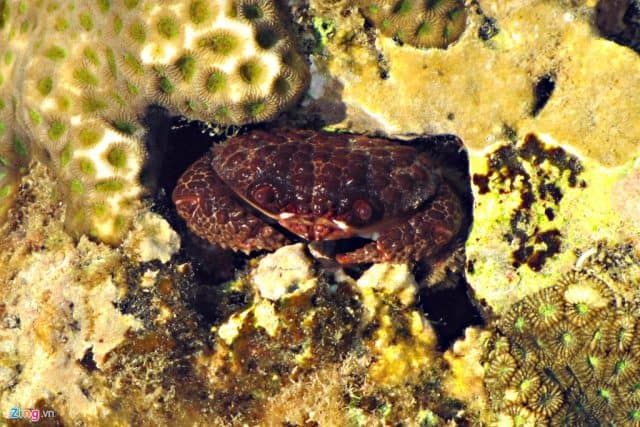 Nơi đây có nhiều vũng nhỏ, khi nước rút tôm cua kẹt trong hốc đá đầy màu sắc (Ảnh ST)