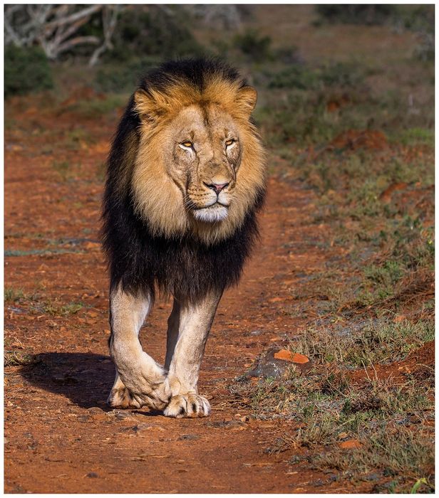Bước đi đầy quý phái của chú sư tử đực lông bờm đen