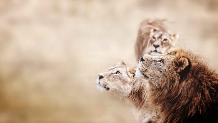 Gia đình hoàng gia của loài sư tử trong kính vạn bộ