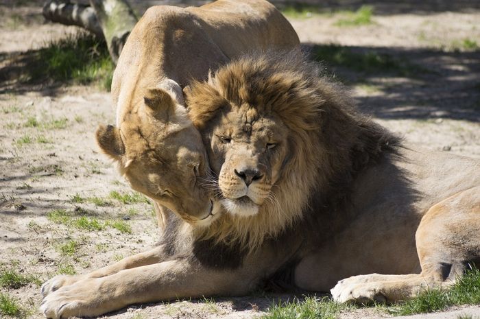 Những cử chỉ âu yếm: Hai con sư tử thể hiện tình cảm qua việc ve nhau