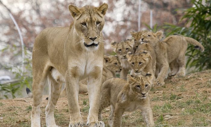 Sư tử mẹ bảo bọc đàn con nhỏ