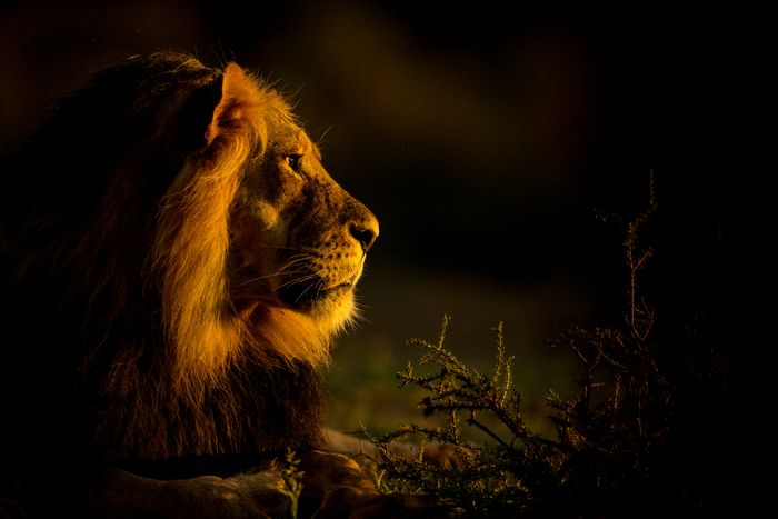 Vẻ đẹp tinh khôi: Sư tử hùng vĩ hiện lên trong bóng tối của đêm