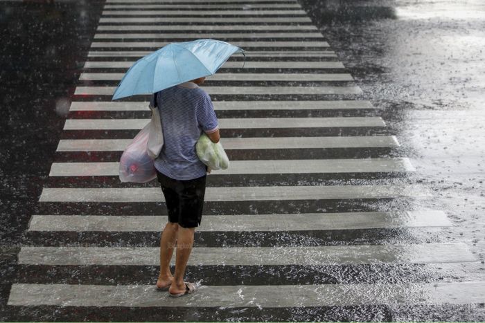 Cơn mưa lạnh lẽo trải qua phố xá thành phố
