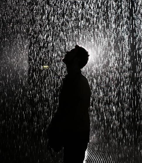Chàng trai buồn bã, ánh mắt mơ mộng chìm đắm dưới cơn mưa tối tăm