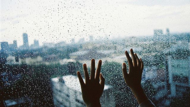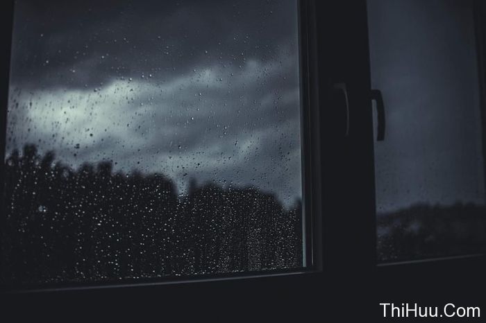 Nhìn qua cửa sổ, cơn mưa tối tăm lạnh lẽo tạo nên bức tranh u buồn