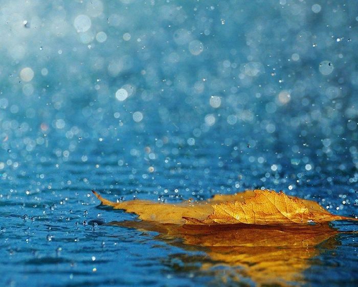 Mưa rơi kết hợp với lá vàng mùa thu, tạo nên bức tranh ấm áp
