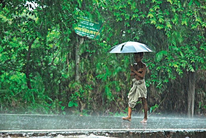 Khung cảnh thiếu niên vượt qua trời mưa rơi, tạo nên bức tranh nổi bật