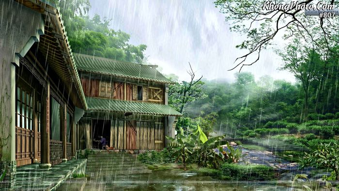 Mưa rơi trên mái nhà cổ, hòa mình vào không khí bí mật của quá khứ