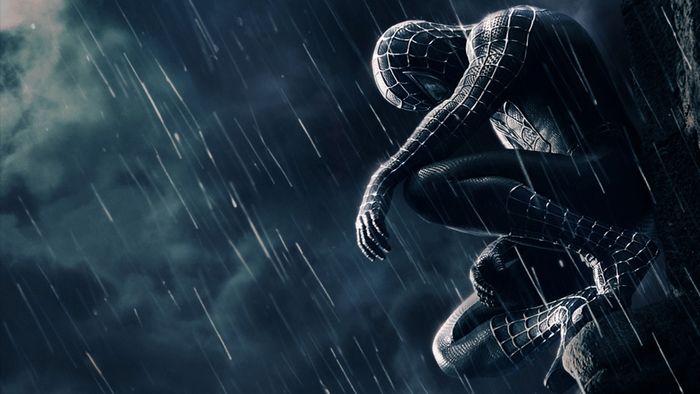Hình ảnh người nhện buồn bã ngồi cô đơn dưới cơn mưa lạnh, ánh mắt tràn ngập nỗi đau