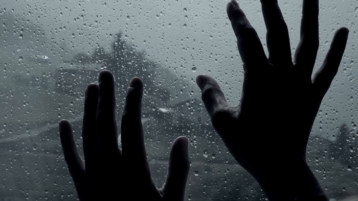 Khung cảnh trời mưa ngoài trời, đôi tay buồn kể lên câu chuyện lẻ loi