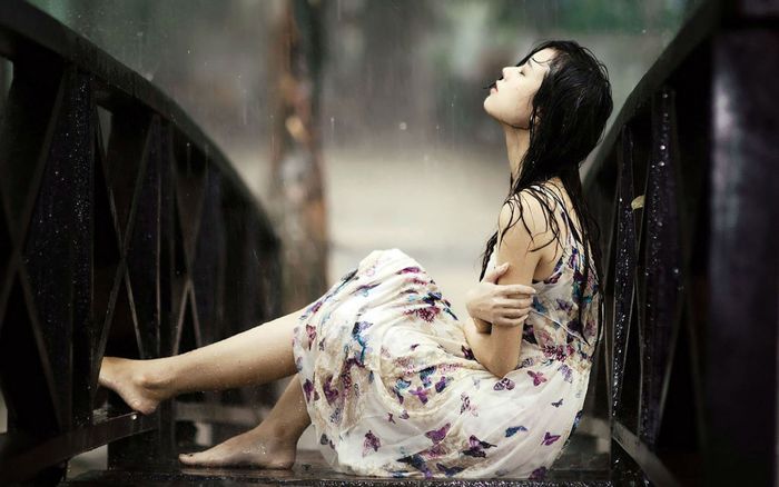 Cô gái buồn lạc lõng dưới trời mưa