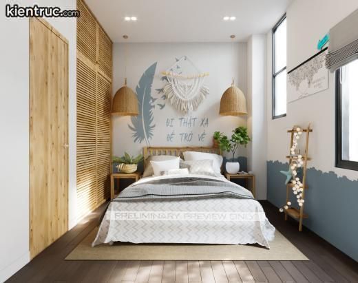 Mặc dù diện tích nhỏ, nhưng sắp xếp nội thất hợp lý vẫn tạo ra không gian rộng rãi, thoải mái. Mọi chi tiết nội thất phòng ngủ vừa vặn, không quá lớn và cồng kềnh. Điều này giúp duy trì sự cân bằng trong thiết kế không gian, không che khuất tầm nhìn.