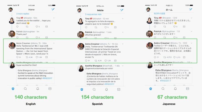 Twitter cho biết họ thực hiện động thái này chủ yếu để đồng bộ trong ngôn ngữ. “Nghiên cứu của chúng tôi cho thấy giới hạn ký tự là nguyên nhân chính gây sự căng thẳng cho những người tweet bằng tiếng Anh, nhưng không phải đối với những người tweet bằng tiếng Nhật,” Aliza Rosen, quản lý sản phẩm tại Twitter, nói trong một bài đăng trên blog. Trong tiếng Nhật, chỉ có 0.4% tweet đạt đến giới hạn ký tự, so với 9% trong tiếng Anh. Từ góc nhìn của Twitter, điều đó cho thấy nền tảng hoạt động tốt hơn cho những người tweet bằng tiếng Nhật hơn là tiếng Anh, và trong các ngôn ngữ tương tự. “Khi mọi người không cần phải gói gọn suy nghĩ vào 140 ký tự và thực sự có thêm chút thời gian, chúng tôi thấy có nhiều người tweet hơn,” Rosen nói.