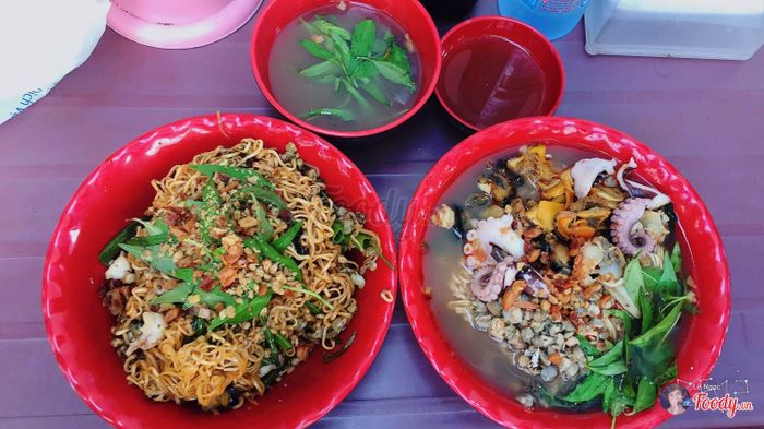 Mì ốc hến ở đây còn có thêm bạch tuộc nữa đó.