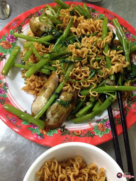 Một món ăn quen thuộc ở các quán ốc chính là mì xào ốc, mì có thể xào với nhiều loại ốc khác nhau như: ốc giác, ốc móng tay,... hay các loại sò.