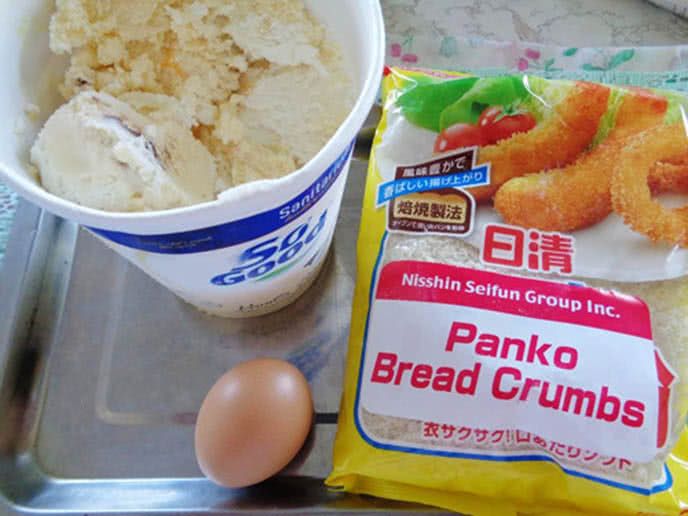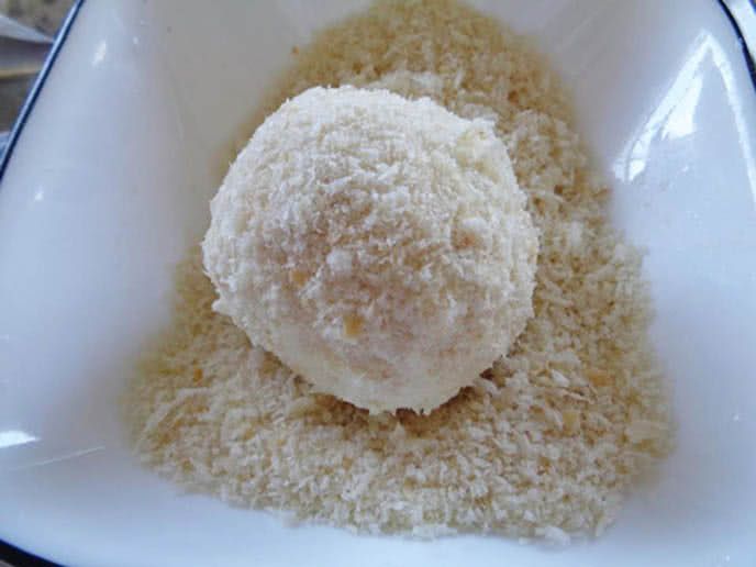 Bước 3: Sau 1 giờ, lấy viên kem ra, quấn qua lớp bột chiên xù trước khi chiên.