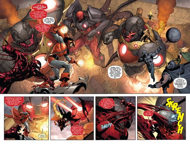 Sau khi sở hữu sức mạnh của Giáo sư X trong sự kiện AXIS, Red Skull trở thành Red Onslaught, một kẻ ác độc nguy hiểm. Anh ta đã bắt Tony Stark tạo ra hai con robot Sentinel từ Adamantium, dựa trên thông tin về các siêu anh hùng sau Civil War. Sau đó, anh ta đã xóa kí ức của Tony và sử dụng chúng trong trận chiến chống lại Avengers và X-Men.