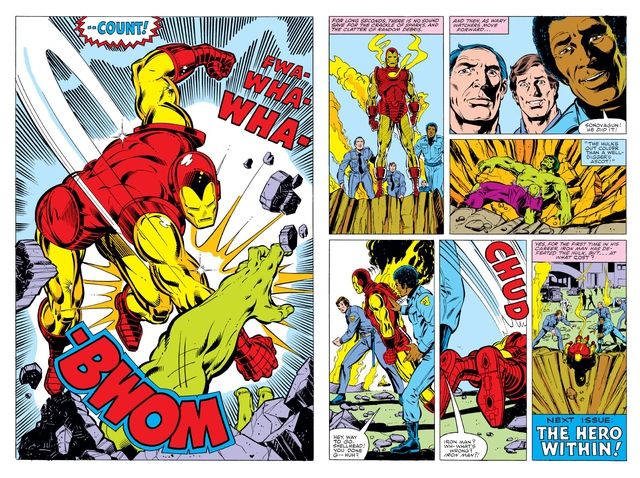 Trong Iron Man (1968) #132, khi phải đối đầu với Hulk, Iron Man đã dùng hết năng lượng của giáp để tung một cú đấm mạnh mẽ khiến Hulk bị bất tỉnh. Sau đó, cả hai đều bất tỉnh do kiệt sức.
